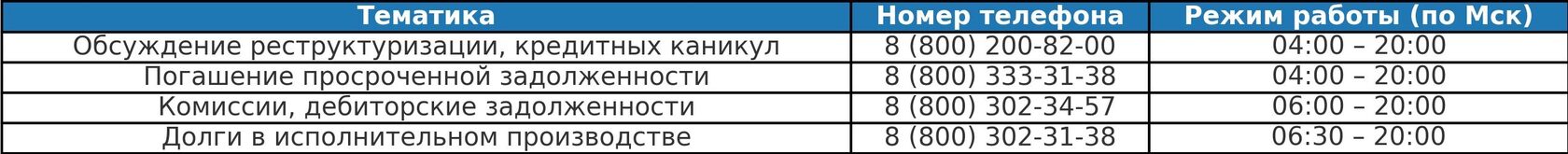 Для решения вопросов, связанных с просроченной задолженностью, включая реструктуризацию и кредитные каникулы, Сбербанк выделил отдельные бесплатные линии: